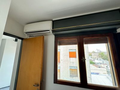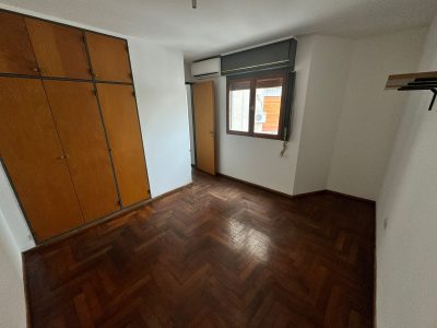 Dormitorio con pisos de parquet, placard con interiores y aire acondicionado