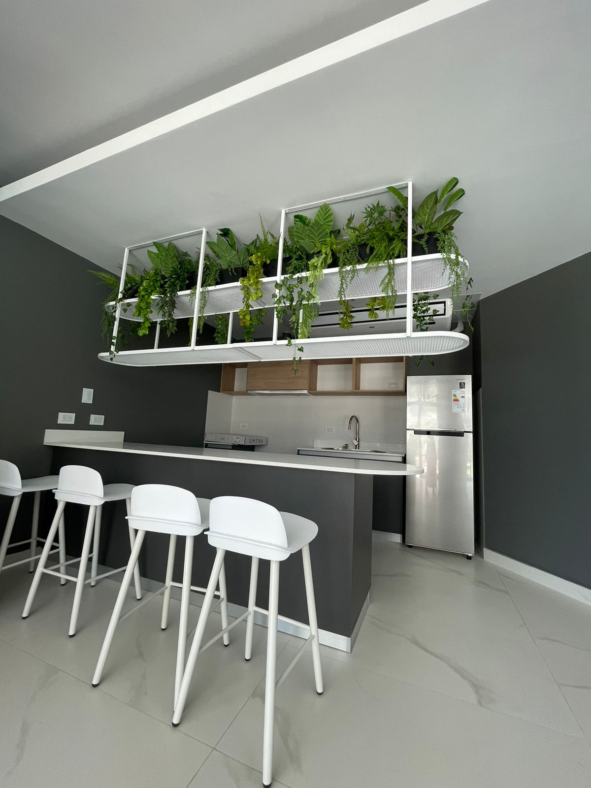 - Cocina semi integrada tipo americana con bajo y sobre mesada,y artefacto de cocina de primera marca.